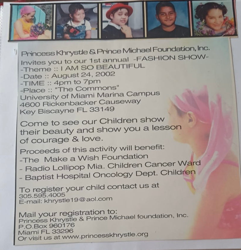 es uno de los más grandes eventos q nuestra fundación ha logrado realizar con mucho esfuerzo, organización, logística, etc. Hubo momentos de casi locura, q me decía, ¿En qué me he metido? Definitivamente, q no tenía absolutamente ninguna experiencia en ningún evento de esta naturaleza, solo sabia q tenía q darles alegría a los niños e inyectarles energía a estas familias q solo veían las paredes cerrándose a su alrededor. Y concientizar a nuestra sociedad sobre lo que mi hija decía: Diles quien fue la Princesa Khrystle, diles que “Los niños están sufriendo, o como yo digo ahora “Hay q alborotar el gallinero” Durante la primera fase del evento con la poquita publicación q use para convocar a los niños voluntariamente para participar en este desfile, hubo controversia, causo critica negativa, en las redes decían q estaba usando la enfermedad del cáncer y a los niños para mi beneficio! Pero el correo electrónico no cesaba de notificarnos, estaba lleno de los formularios de muchos padres que me decían q su niño/a querían participar. Me preguntaban si podían venir con muletas o sillas de ruedas, y de cómo era la vestimenta q iban a usar., formal o deportiva, con qué color de vestido tendrían q llevar!